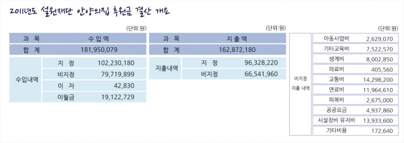 2011년 안양의집 후원금 결산 내용