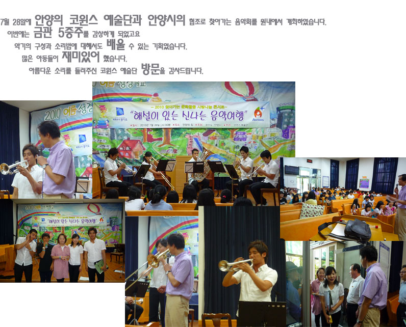 7월 찾아가는 음악회 개최 페이지 정보 작성자 운영자 댓글 0건 조회 7,385회 작성일 10-09-03 04:36 본문 코윈스예술단과 안양시의 협찬으로 안양의집에서 찾아가는 음악회를 개최하며 금관 5중주의 멋진 소리를 듣게 되었습니다. 감사합니다. 목록 이전글2010년 자립지원 전담요원 채용면접심사 결과공고 10.09.03 다음글안양의집 캠프 준비 10.09.03