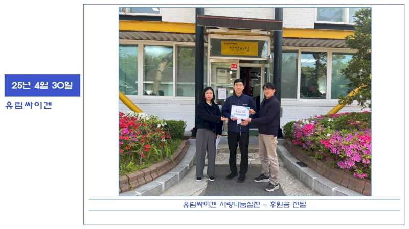 유린싸이겐에서 사랑나눔실천으로 후원금 200만원을 전달해주셨습니다.