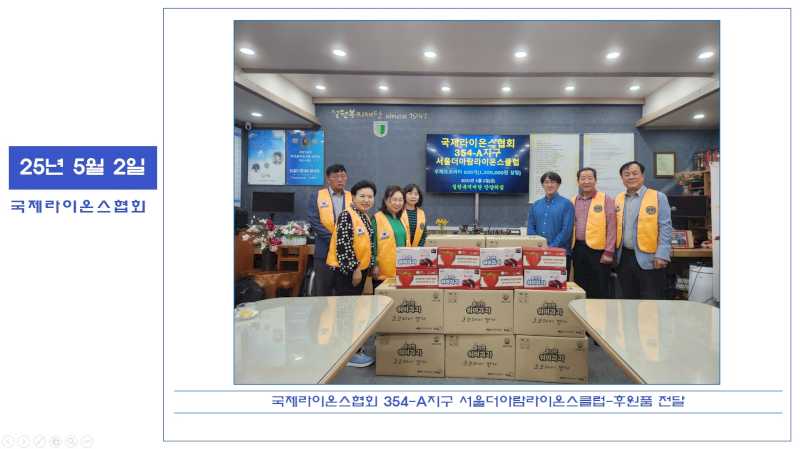 25년 5월 2일 국제라이온스협회 354-A지구 서울더아람라이온스클럽 후원방문
