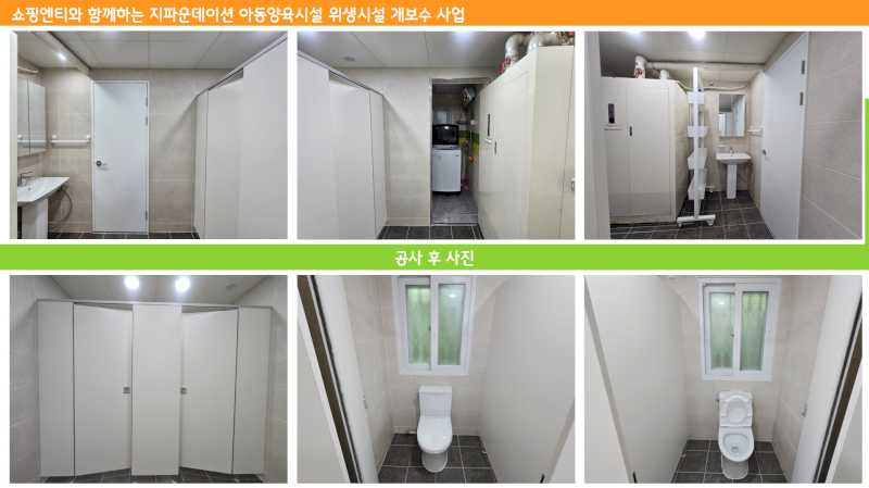 선정이 되고 공사를 진행 후 몰라보게 변신한 화장실을 보고 그곳을 사용하는 아이들도, 직원들도 너무 큰 만족감이 있었습니다.