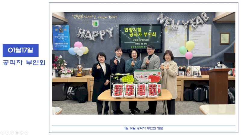 2025년 1월 17일 안양시청 공직자 부인회 후원방문 페이지 정보 작성자 운영자 댓글 0건 조회 841회 작성일 25-01-29 13:45 본문 안양시청 공직자 부인회에서 후원 방문해주셨습니다. 목록 이전글2025년 1월 20일 근로복지공단 후원방문 25.01.29 다음글2025년 1월 14일 임상수후원자님 식사후원(평촌 마벨리아) 25.01.29 댓글목록 댓글목록 등록된 댓글이 없습니다.