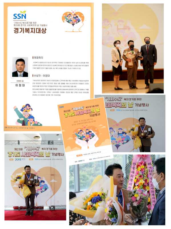 이번 행사에 사회복지 유공자로서 안양의집 이정대 원장님이 경기복지대상을 수상하게 되었습니다.